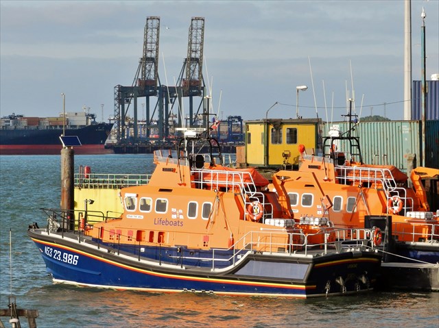 The cranes at the Port of Felixstowe are clearly visible across the water and you might spot one or more enormous container ships there too. Felixstowe is Britain's busiest container port, dealing with over 40% of the country's containerised trade. It has nine available berths along a continuous quay of over 2.3 kilometres (1.4 miles), equipped with 29 ship-to-shore gantry cranes. The port even has its own police force.