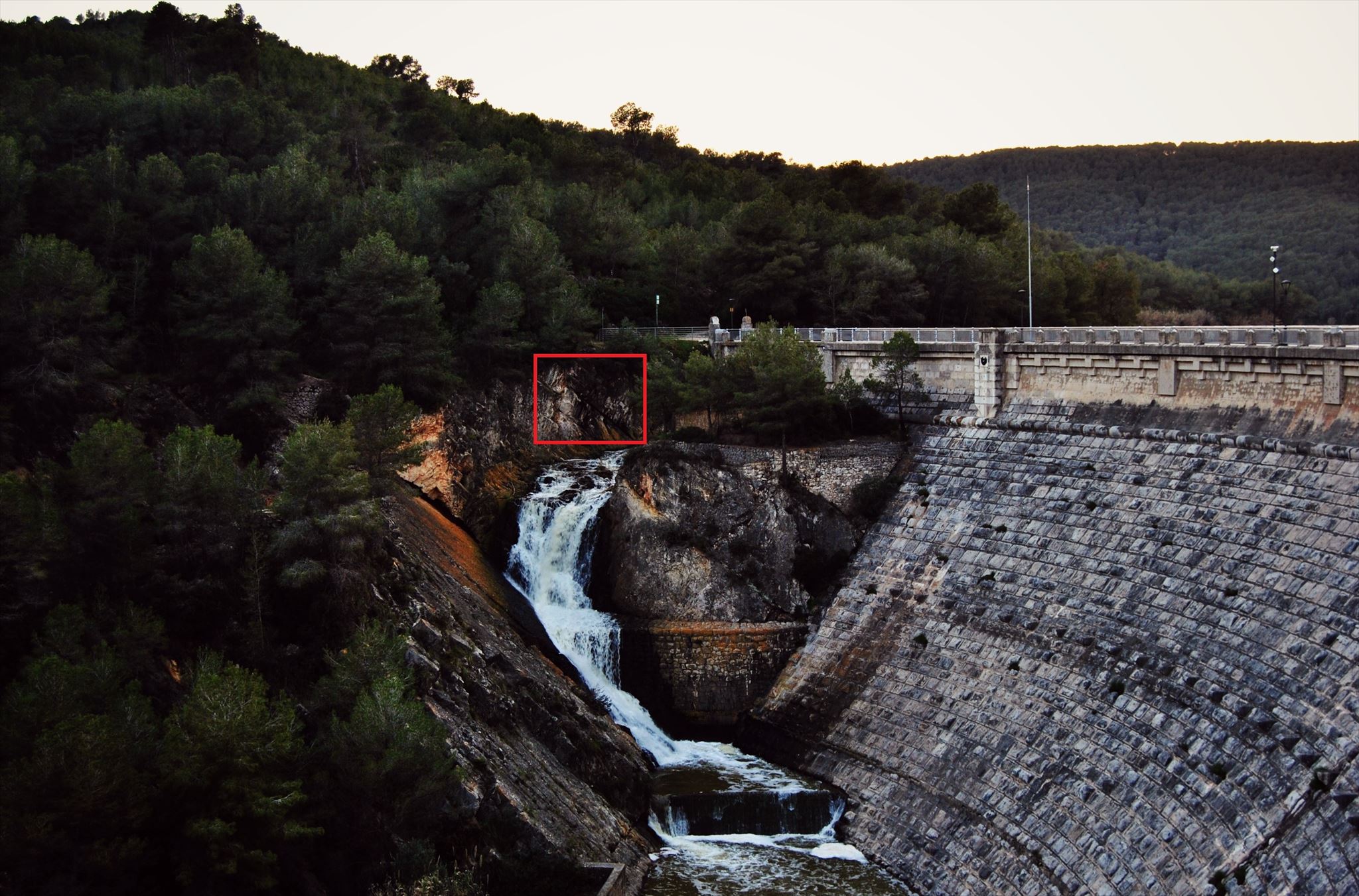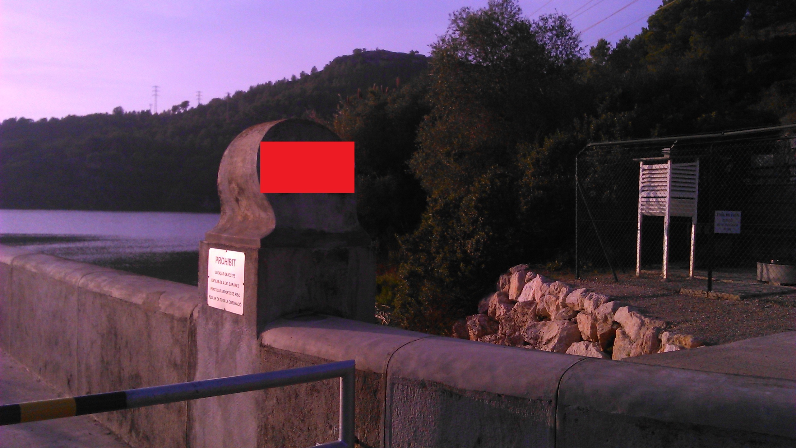 Ara anem al waypoint 2 i de les dues columnes que donen la benvinguda a l'embassament i ens conviden a fer-hi un passeig per damunt de la seva pressa, ens hem de fixar en la de la dreta, mireu la imatge de sota...