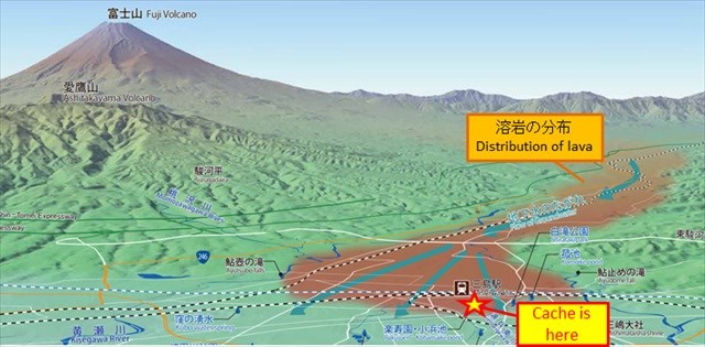 Mishima lava flew out about 10 thousands years ago, and reached current Mishima city, which lava you can observe even now in Rakuju park in which this earthcache is placed.
