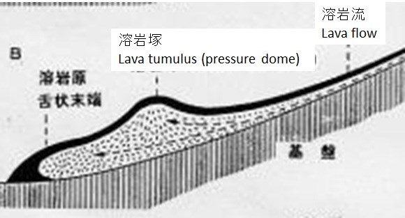 溶岩塚は次のような過程で形成されます(下図も参照)。