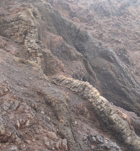At these coordinates you can also clearly see, and even touch, a phenomenon that can be seen on volcanic places: dikes. The dikes form part of a radial swarm.