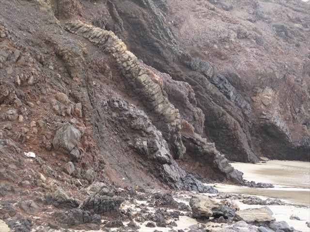 La Pared is an interesting place. Not only does it have a historical value, and not only are visitors blown away by the gigantic waves at its beach, it has also a geological surprise to show: dikes.