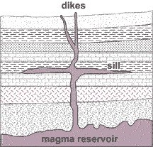Un Dique es una estrecha, estructura tabular de roca ígnea, que soporta a un lado otra capa preexistente de roca; esto implica que un Dique es siempre más reciente que la roca que lo contiene. Los Diques tienen generalmente un ángulo muy próximo a la vertical, pero posteriormente la deformación tectónica puede girar el orden del estrato a través del cual el Dique se propaga, de tal forma que el Dique puede llegar a quedar horizontal. Los próximos a la horizontal, o intrusiones adaptables, a lo largo del plano de la lámina entre capas, se denominan mantos intrusivos (intrusive sills).