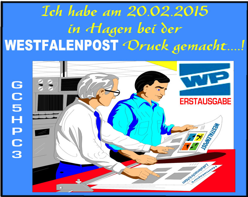 Wir treffen uns am Freitag, den 20. Februar 2015 um 17:20 Uhr vor dem Haupteingang des Druck & Verlagszentrums (siehe Eventkoordinaten), DVZ Hagen, Hohensyburgstraße 65-67, wo auch das Logbuch für eine halbe Stunde ausliegen wird. Ein kleines Körbchen zum Tauschen von Coin`s oder TB´s wird ebenfalls vor Ort sein.
