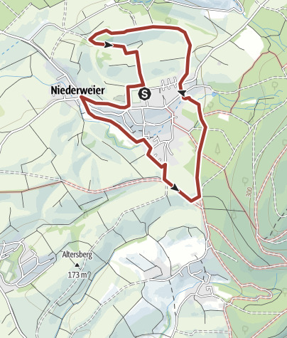Der Rundweg beginnt am Parkplatz der Eichelberghalle