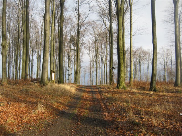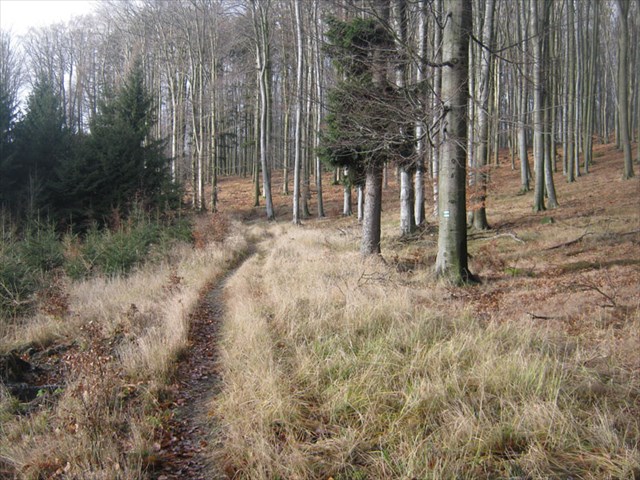 lesní cestou kolem lomu k Haničině studánce, kousek rovně a pak po zelené |