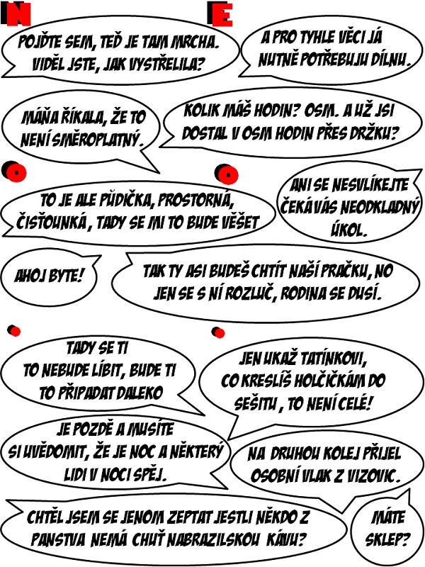 Asi jste poznali, že budete muset přiřadit výrok v bublině ke scénce, kde tento výrok padl a často i určit osobu, která ho pronesla. To v některých případech nemusí být podmínkou. Bubliny jsou potom seřazeny směrem od vrchu dolů, přesně ve formátu souřadnic, tak jak je jistě všichni znáte.