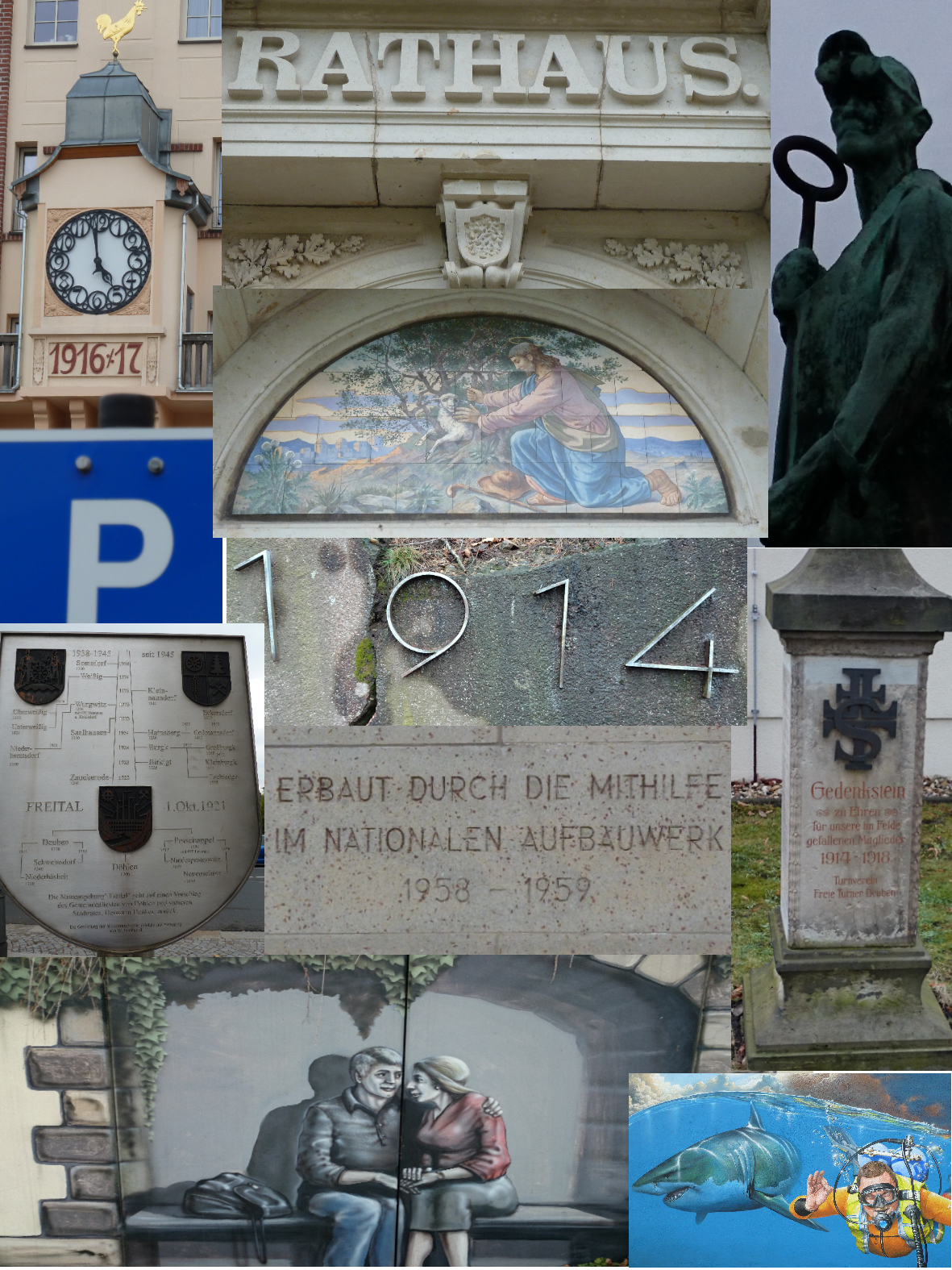 Ich habe 10 verschiedene markante Stellen in Freital fotografiert. Eure Aufgabe ist es nun diese Stellen zu finden und genau dort die Koordinaten auszumessen. :-)