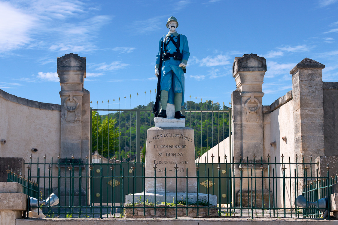 Attention ... Aucune moquerie ici. La cache est placée non loin du monument aux morts de St-Dionisy, une statue représentant un « poilu ». Je voulais mettre en évidence une petite particularité : le fait que ce poilu soit peint, tel un « petit » soldat de plomb !