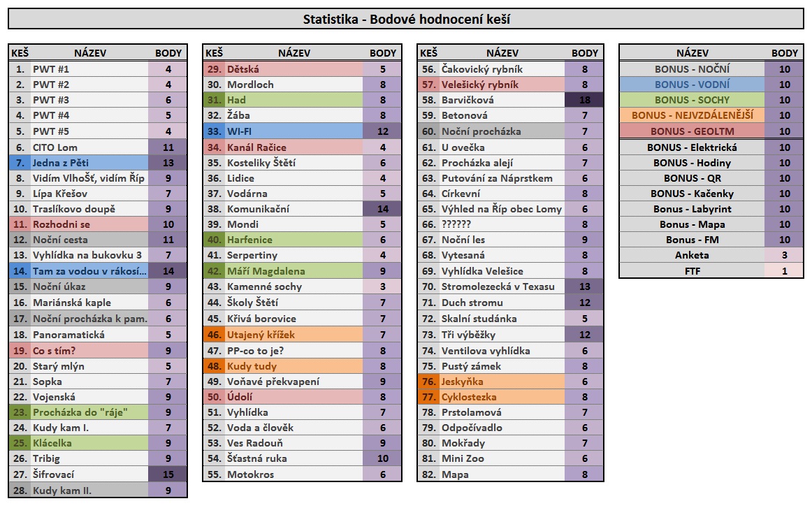 ...je pro týmy o počtu minimálně 2 až maximálně 5 lidí. Cca 80 keší je vymyšleno a umístěno v okruhu cca 7 kilometrů jen pro tuto soutěž, zažijete tradičky, mysterky, letterbox, multiny, wherigo, earth a letos i Cito trash out! Klasicky budou i noční keše, těžké i jednoduché - ohodnocené podle náročnosti. Vše je koncipováno tak, aby to nebylo jen o ježdění autem a googlování, ale především o důvtipu a dobře zvolené strategii. Zúčastnit se mohou i děti, které se určitě mohou ukázat jako vítanou posilou týmu. Jak jste jistě pochopili, na celý závod máte 24 hodin. |