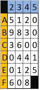 Zoek in onderstaande tabel bij elke code die je gevonden hebt het bijbehorende vakje en streep dit weg. Als je dat voor alle gevonden codes doet houd je een aantal cijfers over. Zet deze achter elkaar en je hebt de coördinaten van de raadselachtige BONUS !