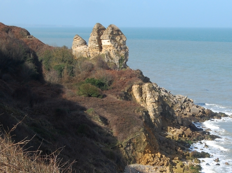 De nombreux éboulements et glissements des falaises de calcaire jaune ont donné au littoral entre Port-en-Bessin-Huppain et Arromanches-les-Bains son aspect sauvage et chaotique. Au fil du temps, les roches de plusieurs tonnes qui s’entassent ont donné naissance à de spectaculaires chaos. Ce phénomène d’érosion qui modèle en permanence la falaise, fait parfois surgir de ces masses rocheuses de surprenantes sculptures naturelles. Ce fut le cas avec les “ Demoiselles de Fontenailles ”, nom attribué à deux piliers monumentaux, hauts de 25 m, apparus aux XVIIIe et XIXe siècles. Après avoir résisté plusieurs années, la dernière fut emportée en 1902 par l'inlassable travail de sape de la mer. Léon Le Behot, en 1881, dans son livre fait référence à cette curiosité locale : «… au milieu des falaises et des rochers, il est de toute rigueur de visiter la demoiselle de Fontenailles, rocher isolé, taillé à pic, au pied duquel le flot bat chaque jour. On s'étonne de voir ce monolithe encore debout, malgré les vents et les tempêtes. Autrefois il existait deux demoiselles de Fontenailles ; la seconde a été détruite par les ouragans…».