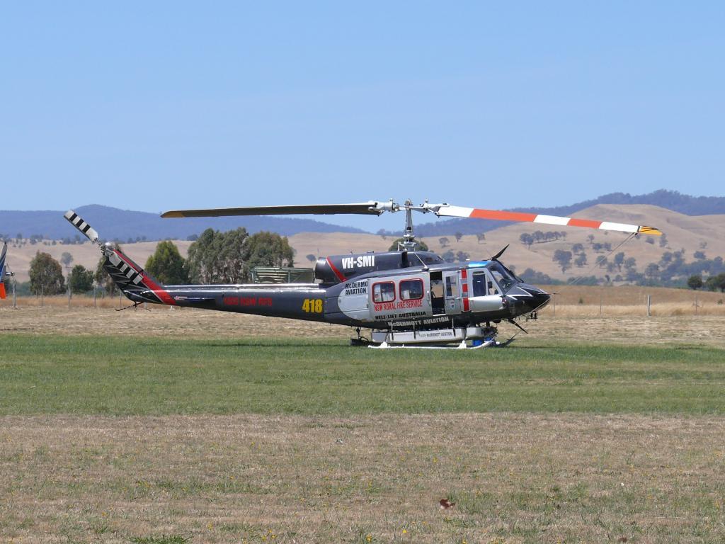 Operated by McDermott Aviation for the NSW Rural Fire Service the Bell 214B can carry 3000 lb of water together with 12 passengers.