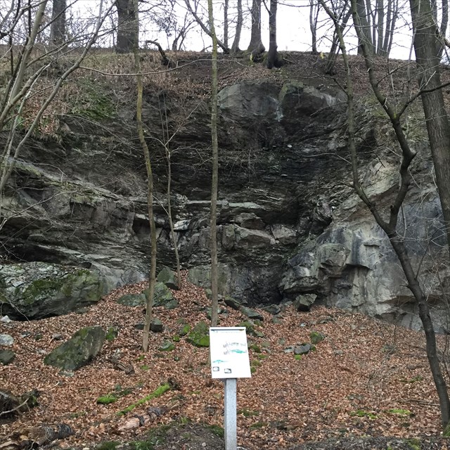 In diesem kleinen Steinbruch welcher am Geologischen Wanderweg Oberes Triebischtal liegt, wurde durch die Seitenentnahme Gestein für den Bau der Kleinbahntrasse, auf der Sie sich vor Ort befinden werden, abgebaut. Es entstand ein wertvoller geologischer Aufschluss, der das Durchbrechen von vulkanischen Gesteinen durch den Meeresboden wiederspiegelt. Vor Millionen Jahren befand sich hier Meeresboden aus feinkörnigen Sedimenten, welche über die Flüsse vom Festland eingetragen wurden. Der Meeresboden wurde durch die Tätigkeit submariner (untermeerischer) Vulkane durchbrochen. Teilweise drang das glutflüssige Magma aus den Spalten auch seitlich in die Meeressedimente ein.