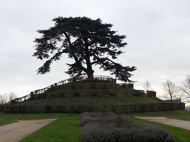 Le cèdre, juché au sommet d'une butte érigée pour former un belvédère, était accessible par un sentier bordé de charmilles appelé « Limaçon ».