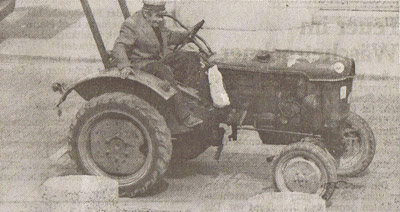 Maxe und sein Traktor: Jahrzehntelang prägten beide das Stadtbild, früher war der Beifahrerplatz noch von einem Schäferhund besetzt. Auch die Plastiktüte ist ein unverwechselbares Erkennungszeichen dieses Gespanns, das Autofahrer wegen seiner Höchstgeschwindigkeit immer nur als Verkehrshindernis ansahen. (Foto: ro) Waldeckische Landeszeitung (WLZ) vom 24.02.1988