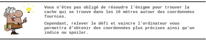 Pour découvrir les coordonnées précises de la cache ainsi qu'un indice ou spoiler, vous devez battre l'ordinateur dans un match en 5 coups gagnants.