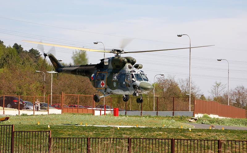 Nejčastějším návštěvníkem jsou vrtulníky armádní vrtulníky W3A Sokol ze základny letecké záchránné služby umístěné na letišti Plzeň - Líně, občas jsou zde k vidění i Eurocoptery EC 135, nebo zřídka Bell 206 či 427. Velmi exotickým hostem byl i Mi-8 vládní letky AČR.