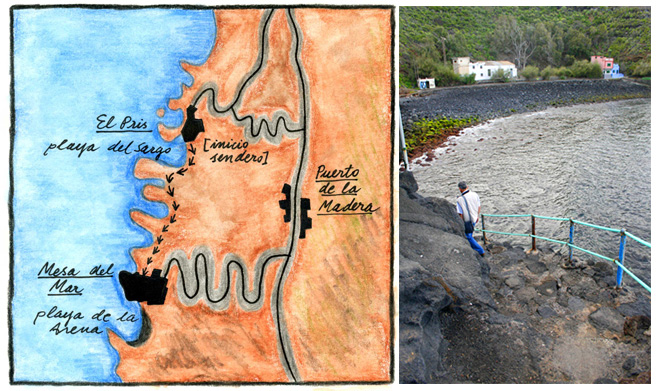 La costa de Tacoronte tiene en El Pris su barrio pesquero, y en Mesa del Mar un pequeño núcleo de veraneo que disfruta de una escondida playa de arena negra. Entre ambos, un corto sendero los comunica, atravesando el lugar que dio origen en el siglo XVI al topónimo Puerto de la Madera. Apenas son 900 metros los que separan El Pris de Mesa del Mar, por un sendero cómodo y ancho que podemos recorrer en menos de 15 minutos.