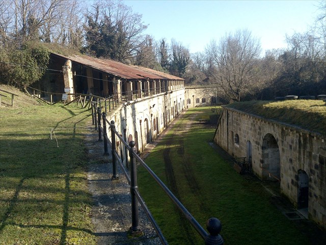Per accedervi si attraversa il ponte (all'epoca ponte levatoio), ed ai lati si puo' notare una delle 4 caponiere con le tipiche feritoie, si accede quindi al corpo detto traversone centrale dove è situata la logistica: il Comando, le sale di servizio, l'infermeria, la sartoria, gli uffici, la fureria. Mentre nell'area del fronte d'attacco e nei fronti laterali, trovano posto camerate, cucine, depositi di munizioni, stalla. Tali stanze sono collegate a un unico corridoio traversale (350 mt) che percorre tutta la struttura. Le scale che si incontrano lungo il corridoio portano alla zona di attacco, alle postazioni di artiglieria.
