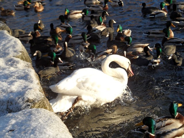 Dette bildet er tatt ved "fuglemateplassen" i den søre enden av vannet. På bildet ser du tre ulike arter.