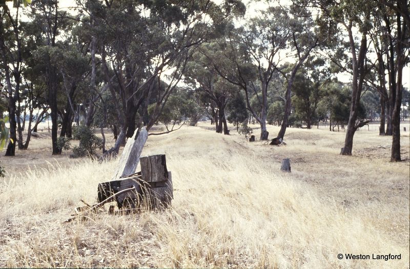 Both the Maldon and Shelbourne lines were built to 'light line' standards - 1 in 40 grades, sharp curves and 60 lb./yard rail. The Shelbourne line only had one intermediate station. Originally named Bradford, the name was changed to Pollard in the early 20th century. Pollard station had no sidings, so any wagons that needed unloading at the station had to be left on the mainline. This resulted in some very unusual workings between Pollard and Shelbourne. Wagons to be left at Pollard were attached behind the guards van at Shelbourne and dropped at Pollard; the next train to Shelbourne would attach the wagons to the front of the locomotive and propel them to Shelbourne (with the locomotive sandwiched between the wagon/s and the rest of the train!). The wagons would then be incorporated into the return train's consist and eventually reach Melbourne or wherever they were destined.