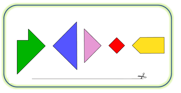 Lege aus diesen 5 Teilen ein Quadrat – es darf kein Teil übrig bleiben !