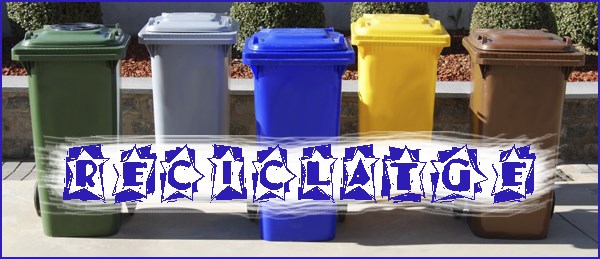 Verd (vidre), Gris (rebuig), Blau (paper), Groc (envasos) i Marró (orgànic).