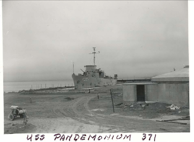 The Navy built a full-scale mock-up of a 173-foot patrol craft on Treasure Island. To practice decontamination, sailors and other students would spray the mock-up, known as the USS Pandemonium, with short half-life radioactive material, then scrub it off. Inside the Pandemonium, 11 pieces of cesium-137 were routinely raised and lowered from lead enclosures so students could learn to use survey meters.