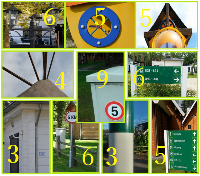 Bij de kaart zaten ook foto's deze gaan jullie helpen om de weg te vinden, volg de stippellijn op de kaart en op elk kruis gaan jullie een foto's moeten herkennen zet deze in de volgorde zoals je ze onderweg tegen komt,