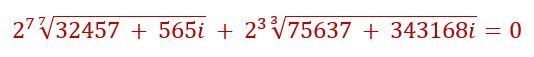 Echte wiskundigen zoals Euler hoeven zich natuurlijk niet met een cryptische puzzel bezig te houden, maar nemen de oplossing direct uit de onderstaande complexe vergelijking: