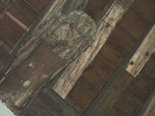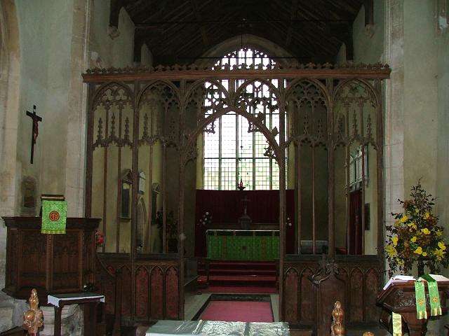 Aside from this, the delicate screen has been repainted with vines and flowers, while above enough of the roof remains to suggest that it must have been glorious, perhaps in the style and to the scale of Mildenhall, across the Suffolk border. A date reads 1488.