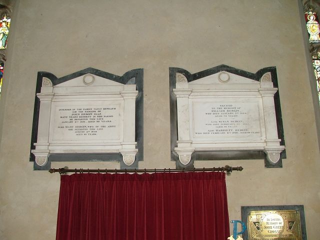 In the chancel are two 19th century memorials to the Hebgin family. Normally, I would have passed them by without a second glance, but DD pointed out that they provide an object lesson in the development of memorials. The easterly memorial, of William and Mary, is delicately carved by a London artist. The other, to John and Susan of a generation later, appears identical, but on closer inspection is actually a poor copy, probably by a Downham Market jobbing mason. Perhaps there had been a downturn in the fortunes of the family, or simply in this out of the way place it was not considered unusual to do so.
