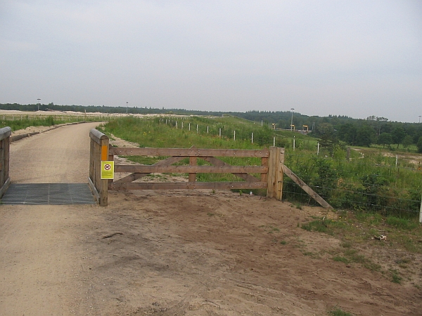 Hier sta je in de nabijheid van theehuis 't Bluk. Op het kruispunt van de fietspaden staat een ANWB paddenstoel.
