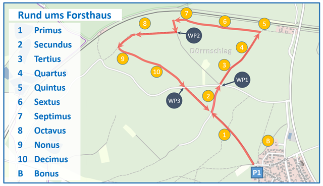 Die Cache-Reihe „Rund ums Forsthaus“ besteht aus folgenden Stationen: