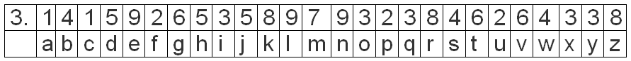 Due to its infinite and random nature, Pi has become a popular memorisation challenge, the current record holder having recited Pi from memory to 67890 digits! We're not going to make you memorise any digits of Pi, but you will have to use them to discover the correct coordinates! Use the 26 digits listed in the Pi chart below to answer the following math questions.