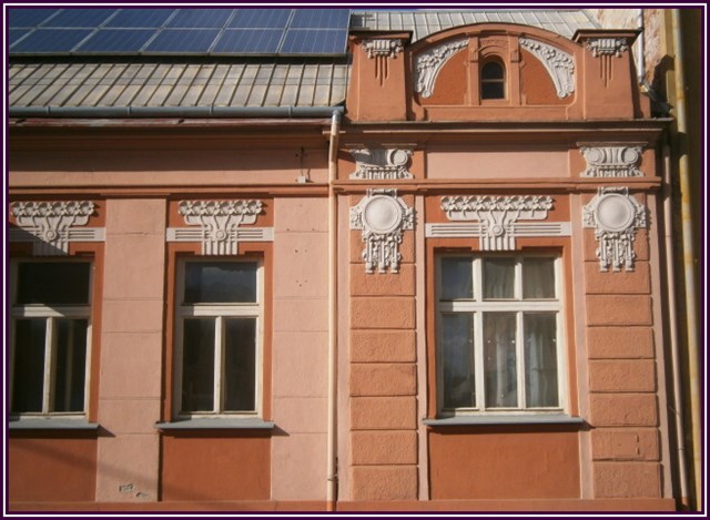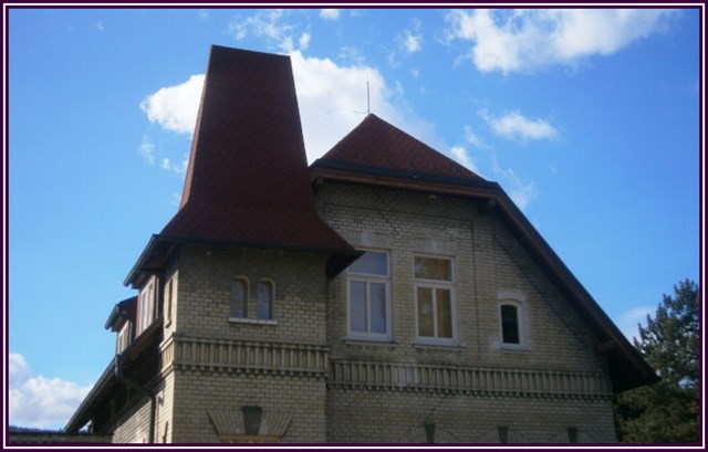 Tento dům asi nebude těžké najít. Před domem je sloup. Na sloupu najdete třímístné číslo.