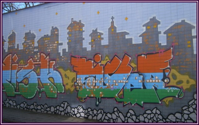 Když stojíte čelem k této stěně,tak vlevo za rohem je ve výšce cca 2,5 metru je modrá tabule s