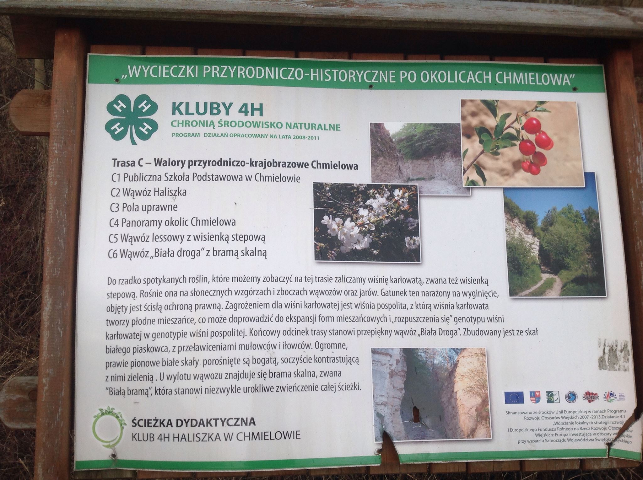 Wąwóz zwany Biała Droga utworzony jest ze skał białego piaskowca. U wylotu wąwozu znajduje się brama skalna. Po wyjściu z Białej Drogi skręcając w lewo i wędrujemy wzdłuż zbocza z dużą ilością odkrytych skał, które były eksploatowane jeszcze w latach siedemdziesiątych ubiegłego wieku i stanowiły doskonały materiał budowlany. Obecnie porośnięte są drzewami, jałowcami, różą, berberysem, a w okresie jesiennym rosną tu grzyby.