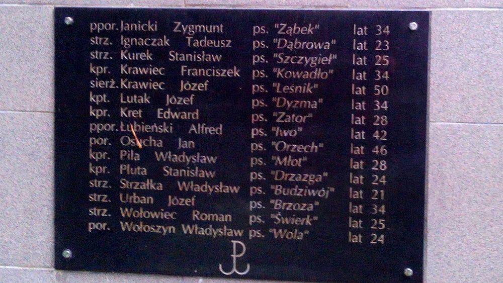 Wyrazy które trzeba wpisać w puste pola krzyżówki to pseudonimy Żołnierzy Armii Krajowej podane na tablicach pomnika. Pseudonimy wpisane w kratki oznaczone literami od A do O, będą odpowiadały wiekowi żołnierza. Wiek to liczba którą trzeba podłożyć do wzoru. Np. wpisany w pole oznaczone literą F strz. Barycza Stanisław ps. "Buk" lat 37, oznacza F=37.