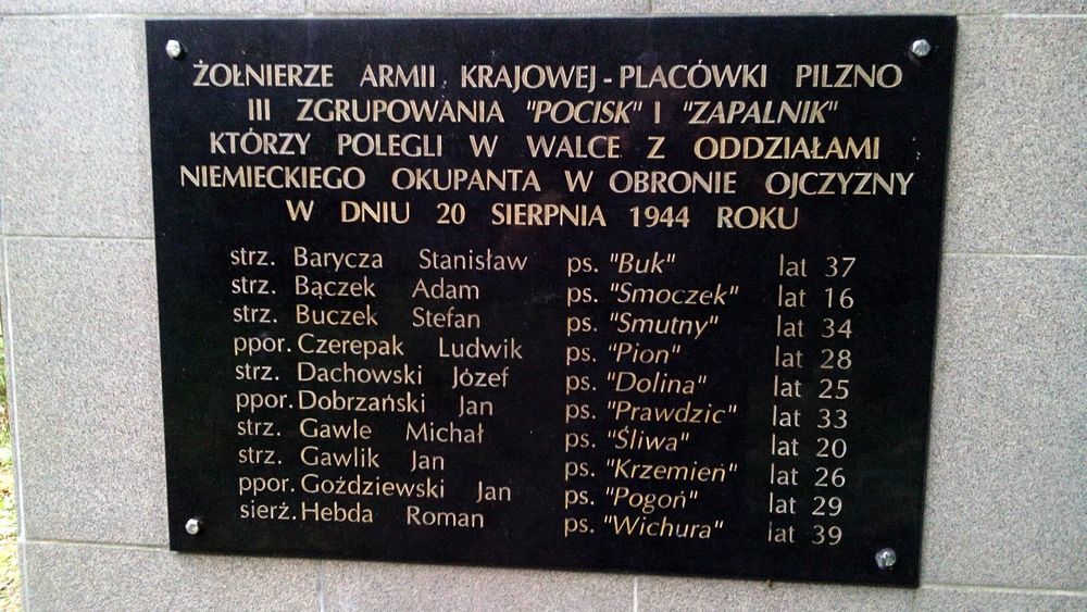 Odsłonięcie Pomnika III Zgrupowania AK „Pocisk” nastąpiło 7 maja 1967 roku w 23 rocznicę walk z okupantem na tym terenie. Natomiast tablice upamiętniające nazwiska poległych żołnierzy wmurowano w sierpniu 1994 roku, w 50 - tą rocznicę Akcji „Burza”.