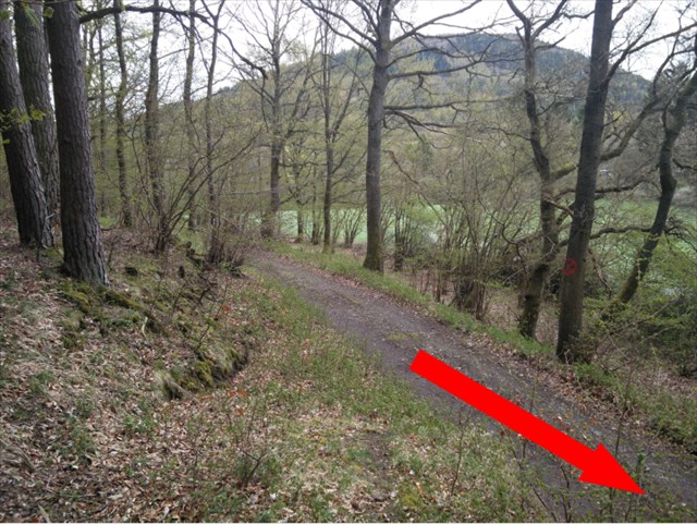Zuerst geht's also von diesem Baum hier ca. 110m den Weg weiter, dann links rein und bevor es in den Wald geht zuerst mal links halten, dann