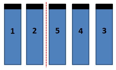 Und nochmal: Man startet an Position 4, da 1 bis 3 schon richtig aufsteigend sortiert sind. Jetzt wird wieder verglichen: Ist die 5 kleiner als die 4? Natürlich nicht, also wird nichts getauscht. Da nun nur noch eine Dose an Position 5 übrig bleibt, muss diese selbstverständlich eine größere Nummer haben, als alle anderen Dosen, die links von ihr liegen. Hier kann also auch nichts mehr verglichen oder vertauscht werden.