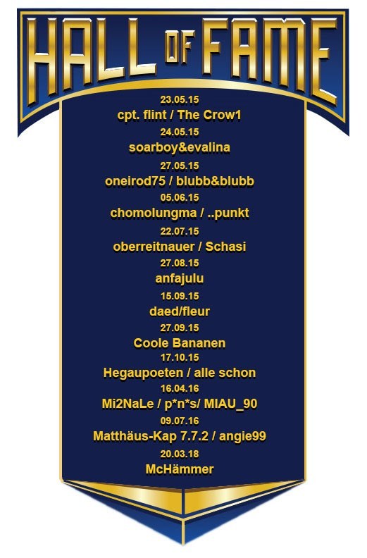 Vielen lieben Dank an KoiMuggele, der Rumplanerin, Roadrunner61, gfunda, husti und Mylex für Idee und Umsetzung des Themas und die Betreuung während der letzten Jahre.