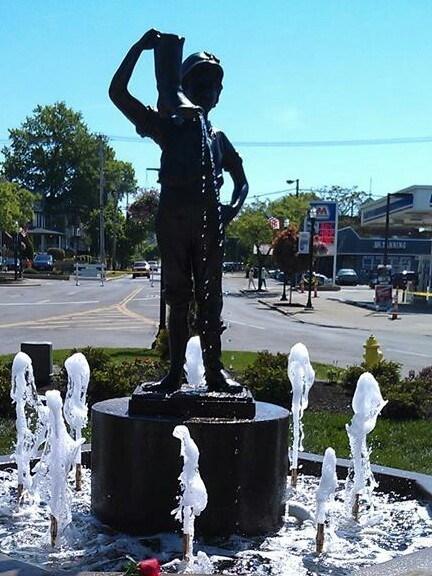 The story behind the boy can not be verified, but a popular version is that he was carrying water in his boot to Civil War soldiers. His boot had a hole in it so he held his hand over the hole to keep the water from leaking out. There are several statues of the boy with the boot around the country. Wadsworth was originally given a similar statue in 1896 as a Civil War memorial. That statue was melted down during World War II so the metal could be used to support the war effort. Seven decades later, a new statue was cast from a mold made from a similar one on loan from the city of Sandusky, Ohio. It was unveiled in 2014 as part of Wadsworth’s bicentennial celebration. The base of the fountain contains plaques donated by the American Legion with names of the fallen men and women of Wadsworth.