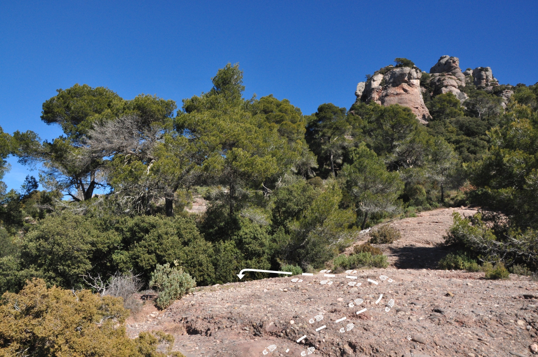 Aquest camí és el va a la Canal de l'Abella, molts de nosaltres hi passem fent drecera per anar al Morral del Drac, Sescorts, Can Pobla, La Mola i cap a molts altres indrets.