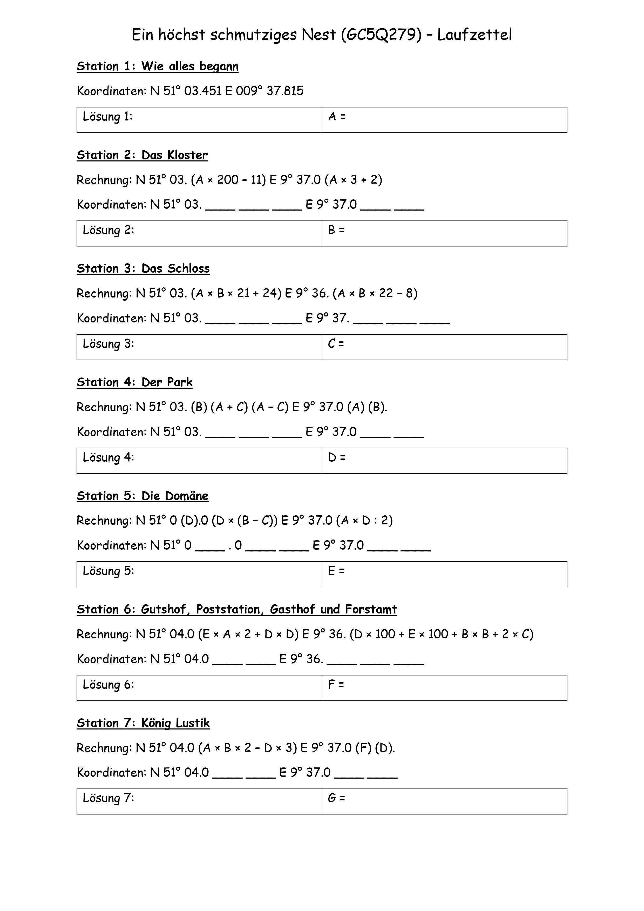 Station 4 findet ihr bei N 51° 03. (B) (A + C) (A – C) E 9° 37.0 (A) (B).