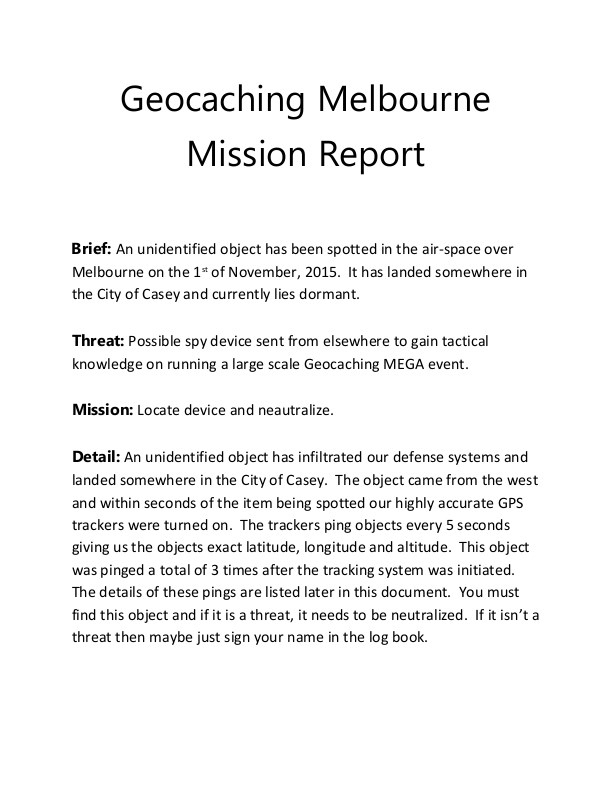You have been drafted for a very special mission on behalf of Geocaching Melbourne. Read your mission statement below.