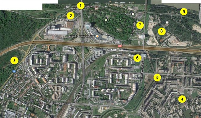 Lido (F) - Prírodné kúpalisko Lido bolo obľúbeným miestom Bratislavčanov od začiatku 20. storočia. Na vyhradených miestach Dunaja sa kúpalo ešte v 40. rokoch 20. storočia. Kúpalisko Lido spočiatku tvoril len malý bazén a kus upraveného brehu. Komplex bol postupne dobudovaný v roku 1934. Na kúpanie slúžil verejnosti až do 90-tych rokov.