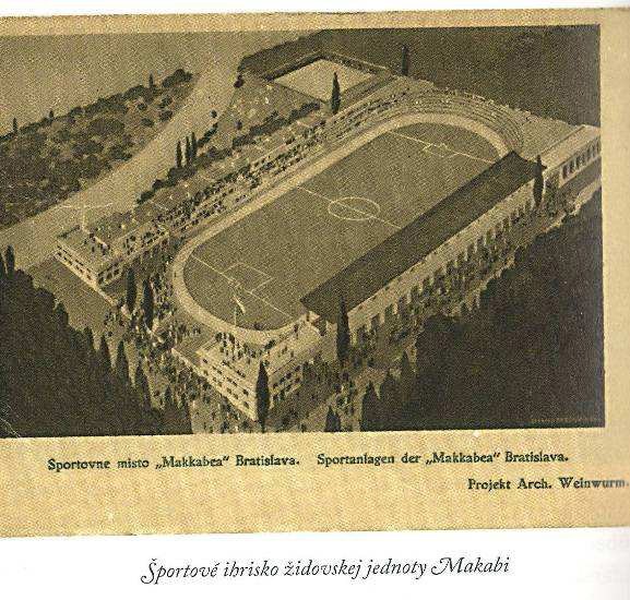 Štadión Makabi (A) patril židovskému futbalovému klubu ŠK Makkabea Petržalka, ktorý postavili v 20. rokoch 20. storočia. Zachoval sa jeho projekt od architekta Weinwurma. Štadiónu dominovala nezvyčajne vysoká drevená tribúna, možno aj so 45-stupňovým sklonom. Židovský klub hral v rámci bratislavského futbalu súťaže I. triedy. I tento športový areál mal aj tenisové kurty, tak ako všetky petržalské štadióny a ihriská. Športový areál ŠK Makkabea prevádzkovali v posledných desaťročiach pred asanáciou štadióna ŠK Spoje Bratislava – Poštári. Z areálu, ktorý za okupácie úplne spustol a taký bol aj dlhé roky po vojne, vybudovali Spoje dôstojný stánok, ktorý fungoval až do asanácie v 70-tych rokoch 20. storočia.
